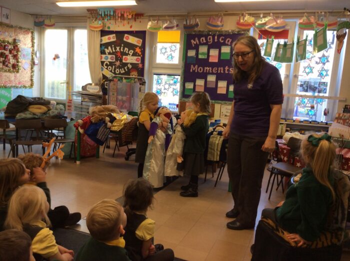 Today, we had a lovely visit from a lady called Tracey who brought some large puppets with her, so we could help her retell the Christmas story.